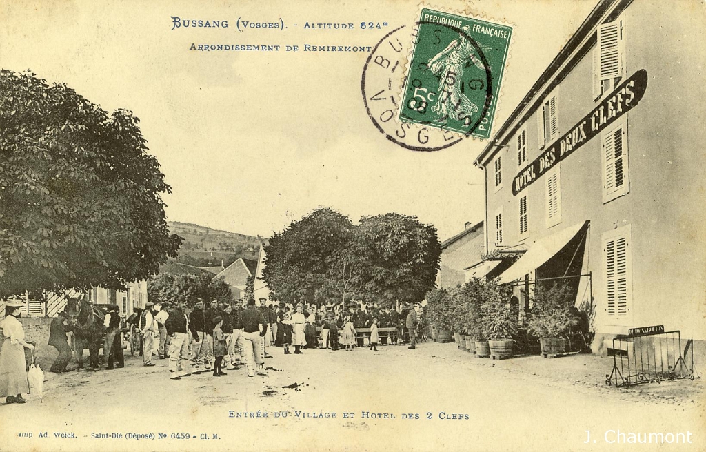 Bussang. - Altitude 624m. - Entrée du Village et Hotel des 2 Clefs