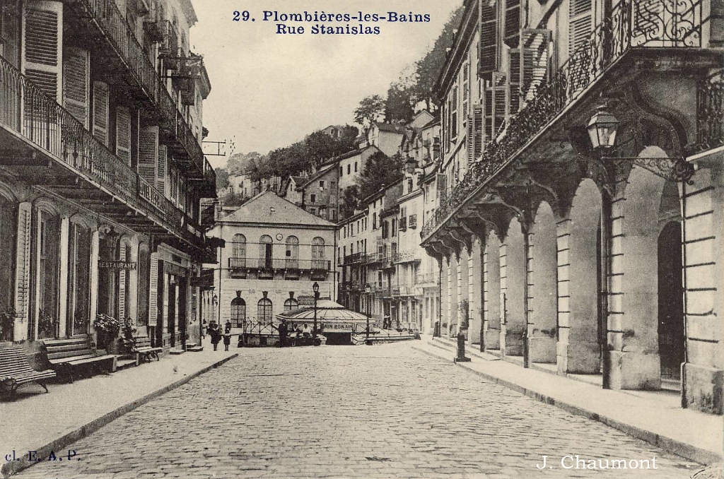 Plombières-les-Bains. - Rue Stanislas, Maison des Arcades et Bain Tempéré