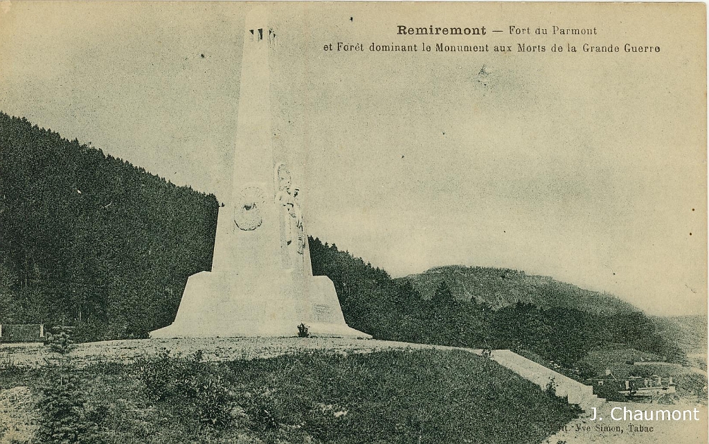 Remiremont - Fort du Parmont et Forêt dominant le Monument aux Morts de la Grande Guerre