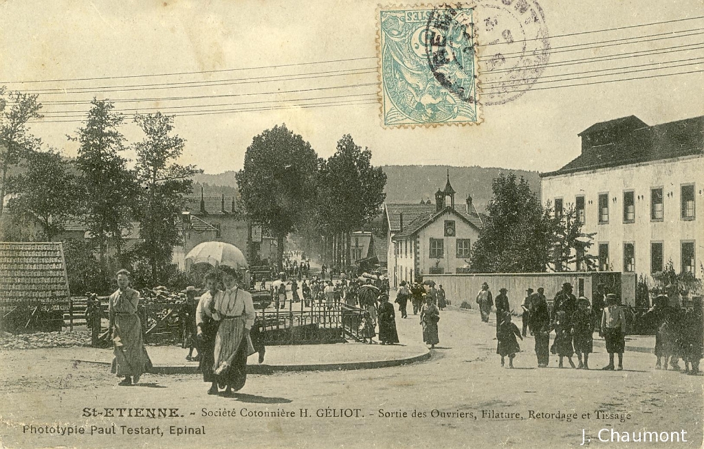 St-Etienne. - Société Cotonnière H. GÉLIOT. - Sortie des Ouvriers, Filature, Retordage et Tissage